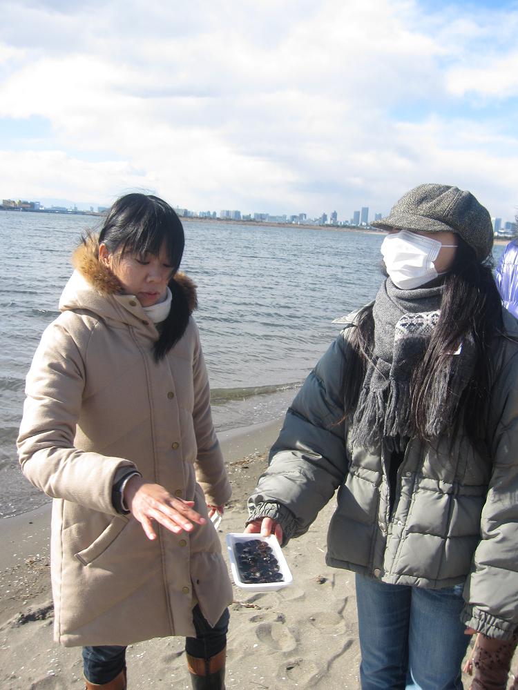 海辺で 淡水育ちのしじみを 海に放つという