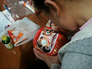 みんなで名前を書いて、リーダーのえりが目を入れました。